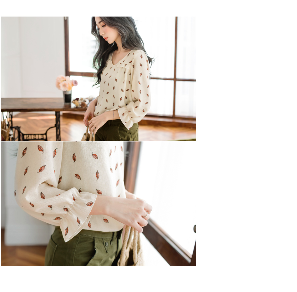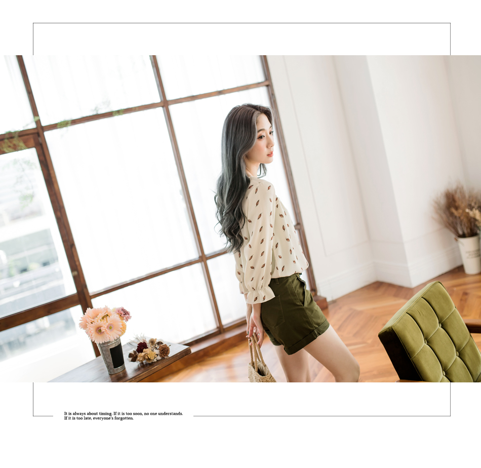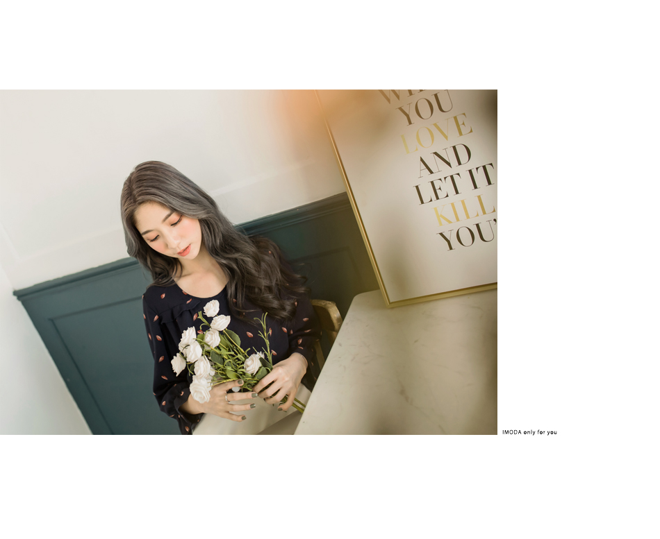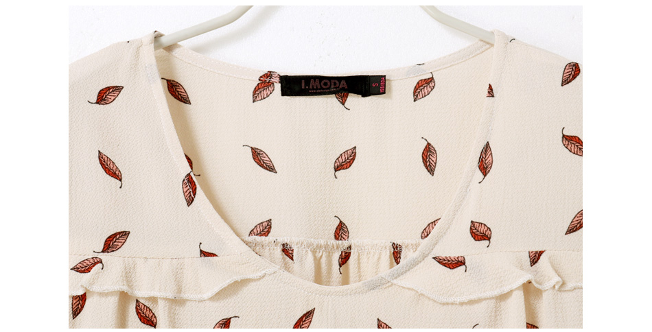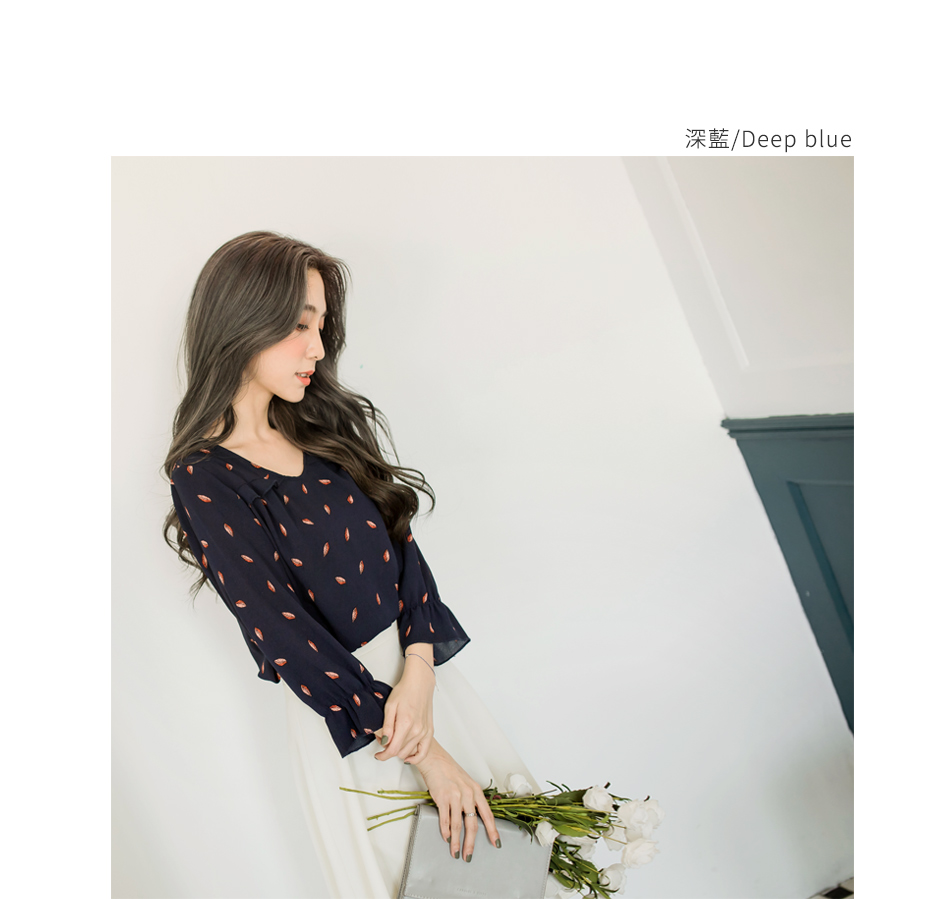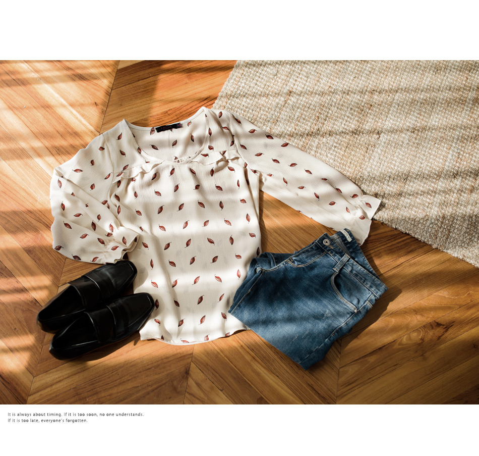滿版印花圖案小荷葉邊縮口袖紋理面上衣 ↘注目推薦↘