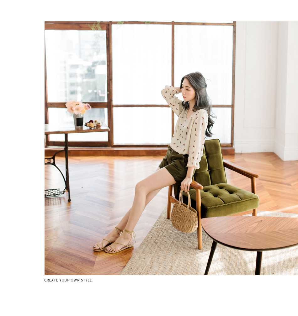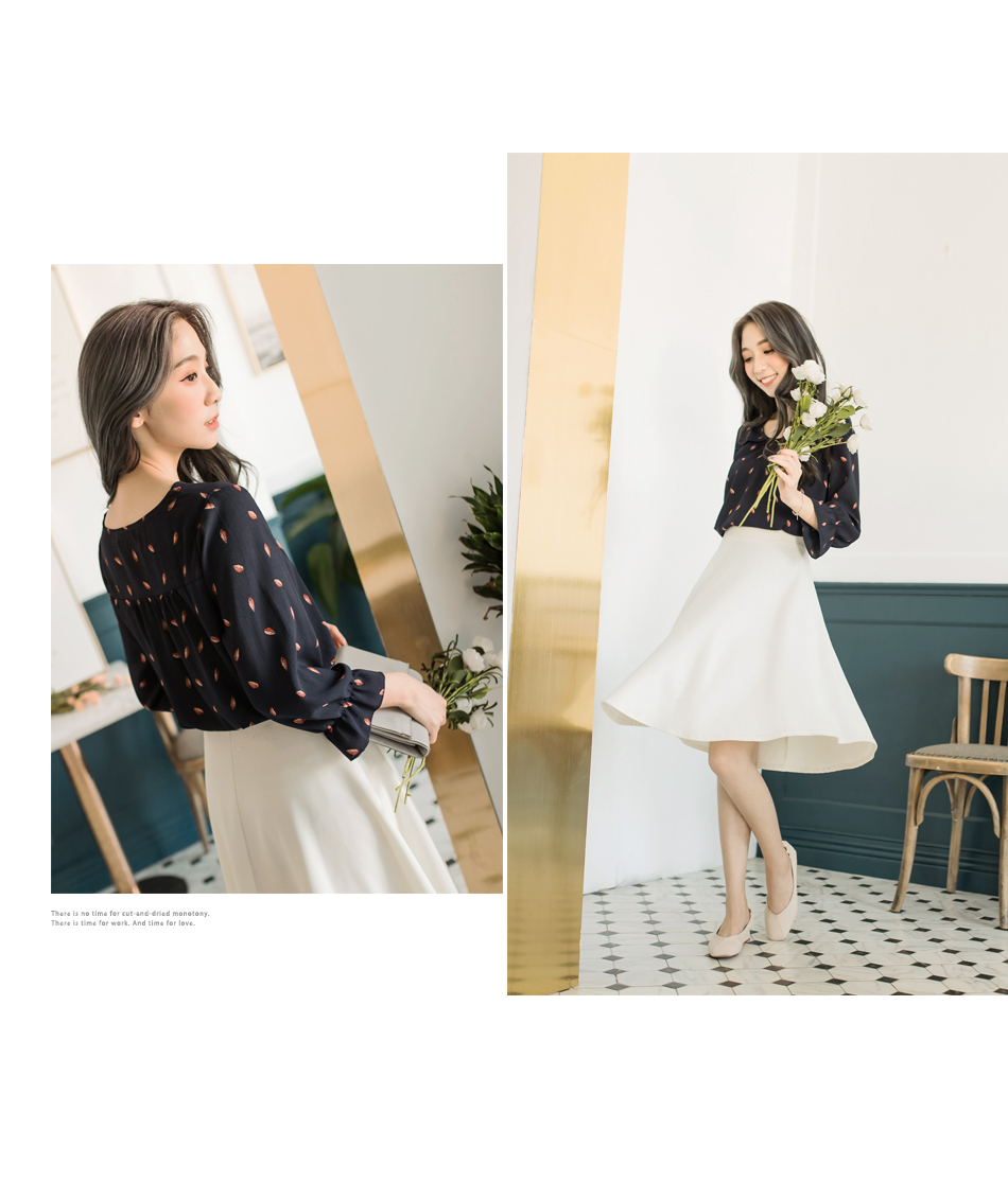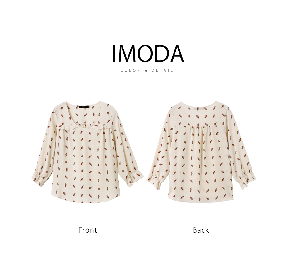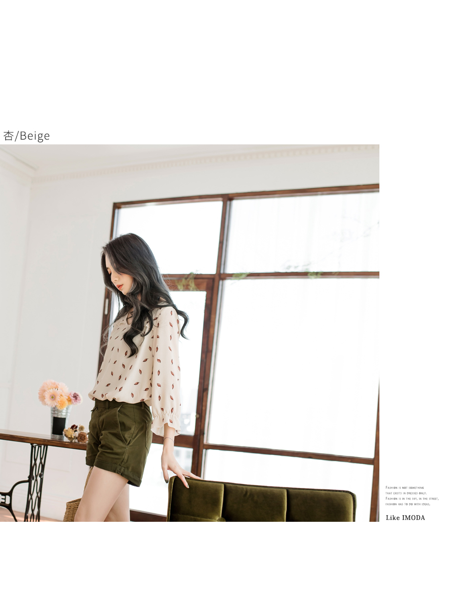滿版印花圖案小荷葉邊縮口袖紋理面上衣 ↘注目推薦↘