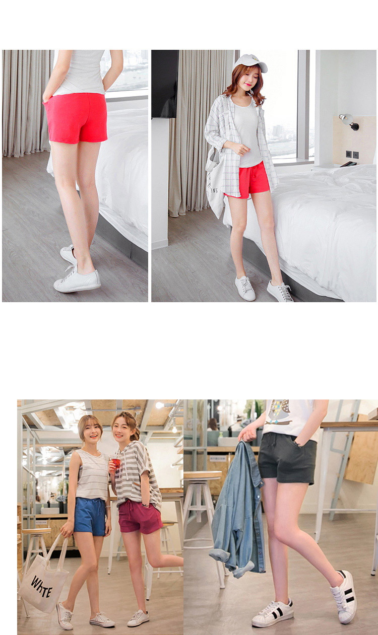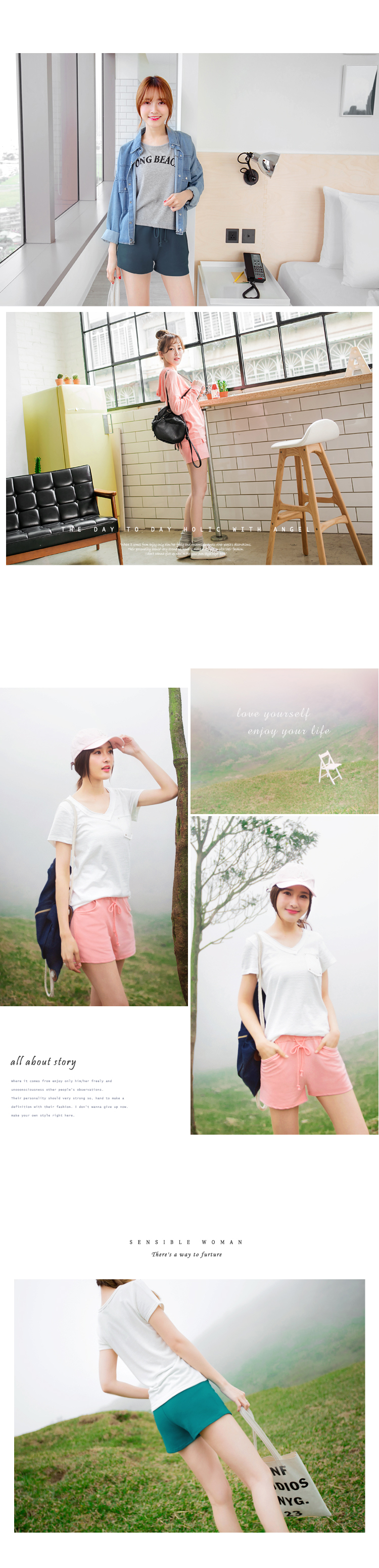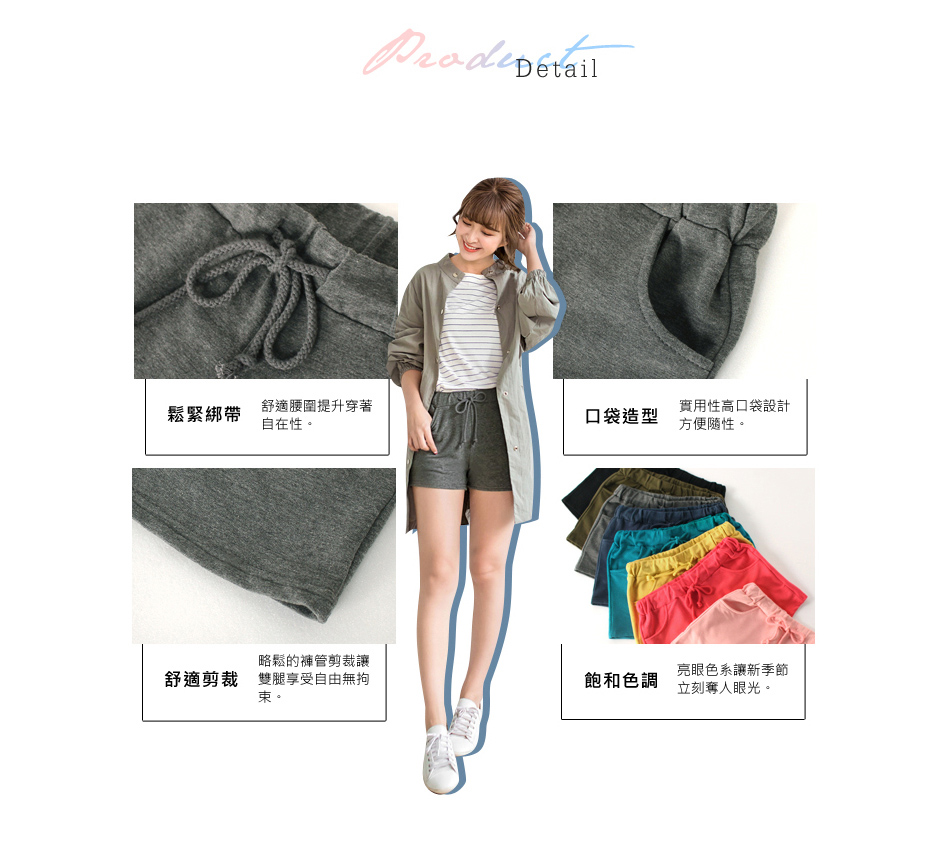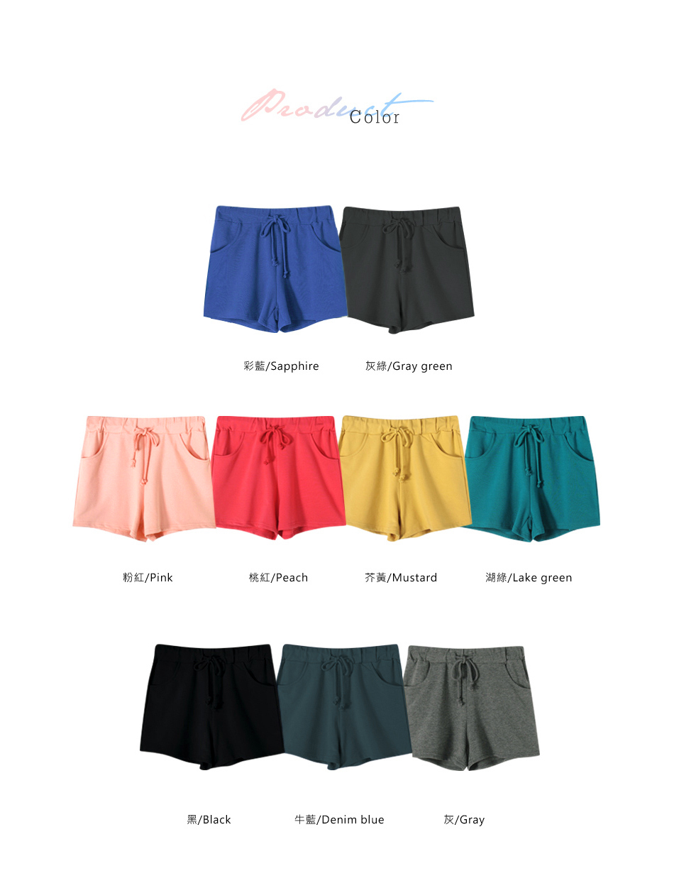 腰圍鬆緊抽繩綁帶多色素面棉感休閒短褲 ↘注目推薦↘