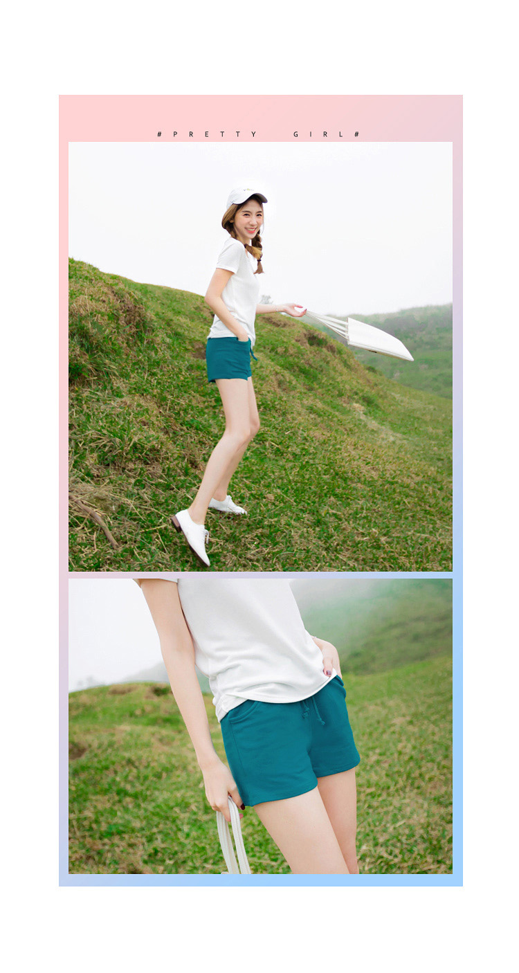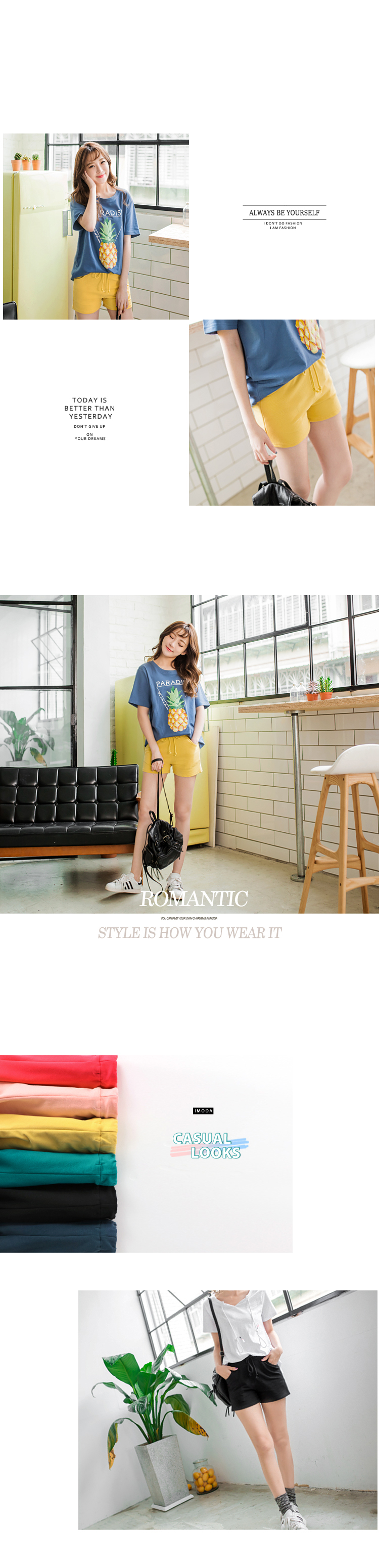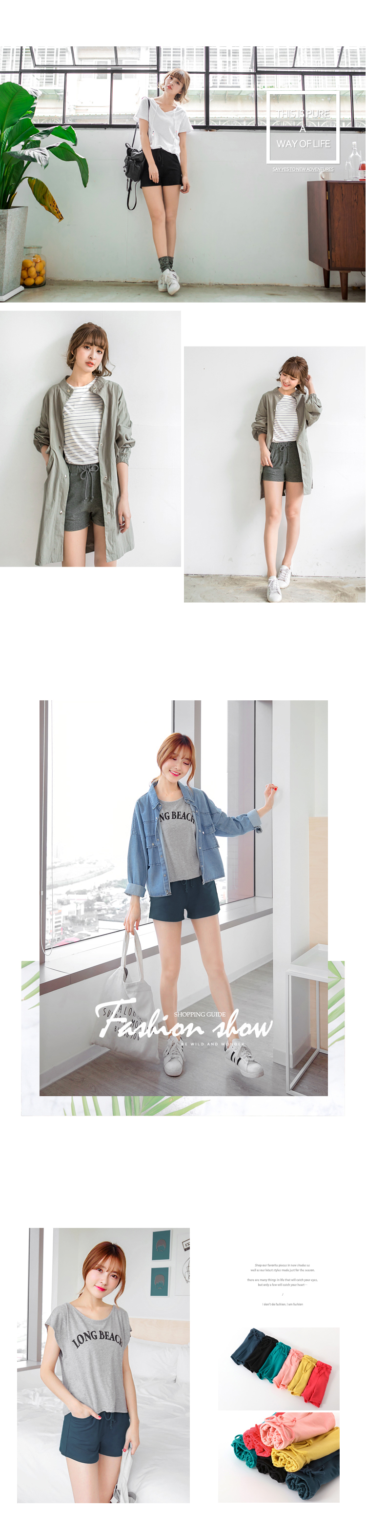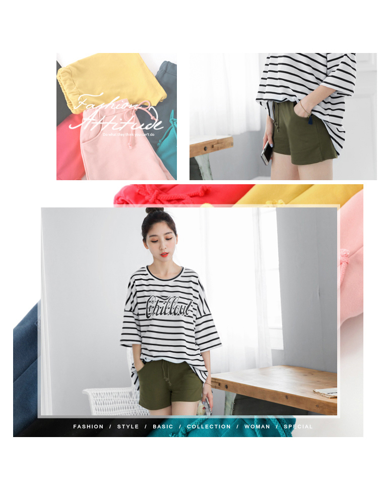 腰圍鬆緊抽繩綁帶多色素面棉感休閒短褲 ↘注目推薦↘