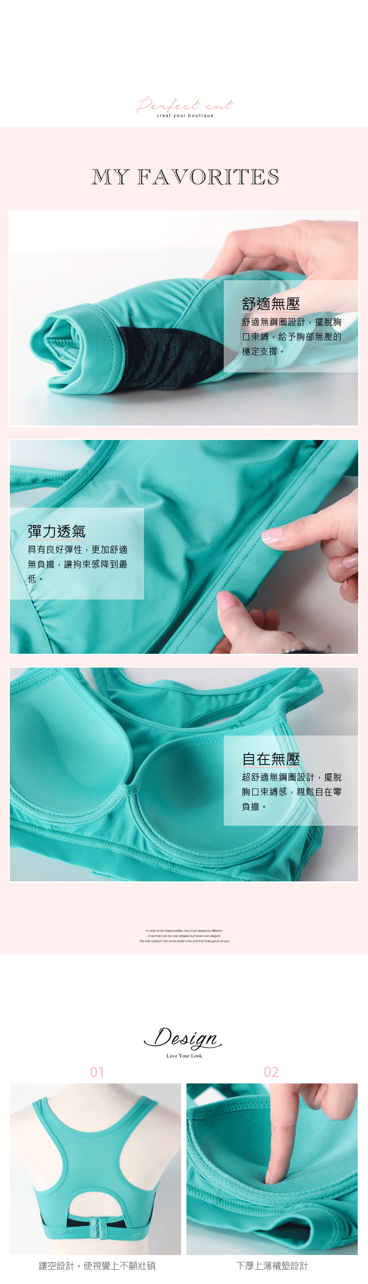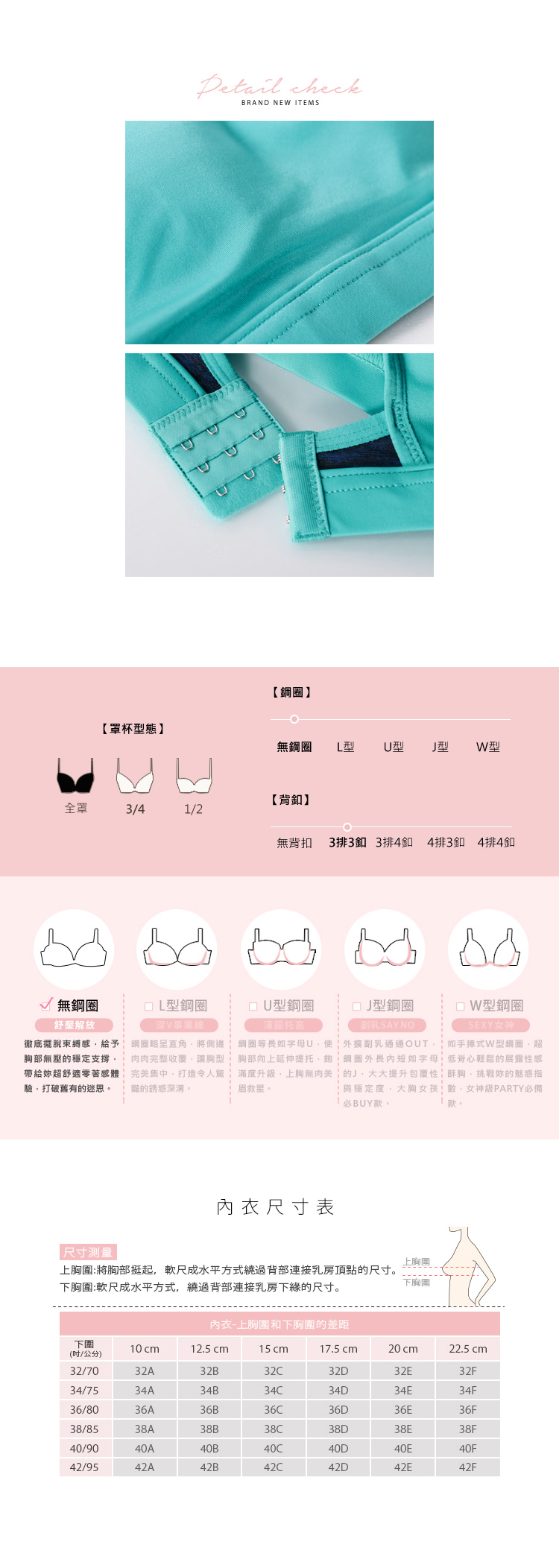 ![]() 超輕盈感~減壓無鋼圈3/4罩休閒內衣‧4色 售價:199 我要購買 一體成型、無鋼圈設計的時尚素色運動內衣,完全符合現代女性的日常需求~ 特別適合於運動、瑜珈、居家和夜寢時穿著,讓妳體驗舒適自在的零束縛感!! ********************** 小提醒: 胸 | ![]() 勻稱美型~纖薄款蕾絲美體塑身背心‧2色 售價:199 我要購買 美型蕾絲背心,無鋼骨設計+U型托胸剪裁,貼身雕塑創造美胸視覺~ 背部交叉織紋矯正身型,自然挺直後背,拒駝背、貓背!! 嚴選超彈力萊卡材質製作,舒適親膚~~ ********************** | ![]() 性感千金~1/2罩條紋水鑽內衣‧2色(B-C) 售價:329 我要購買 開口向上延伸的U型鋼圈,提托上挺讓妳輕鬆打造飽滿胸型! 絲滑條紋面料加上亮眼的水鑽設計,完美演繹都會時尚美人姿態~ ********************** 小提醒: 胸罩內有鋼圈,後釦式穿法,背 |